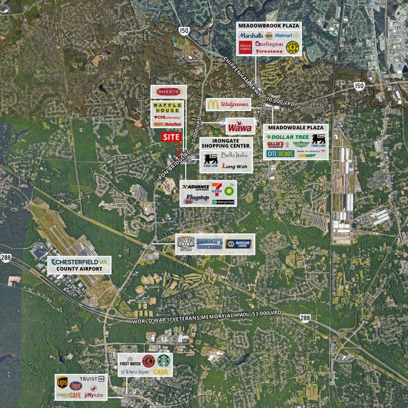 Available 3.33 acre lot with great visibility and access. Frontage on high traffic Iron Bridge Road. Adjacent to Flagstop Car Wash, Advance Auto Parts, Autozone, Sheetz and across from Irongate Shopping Center.