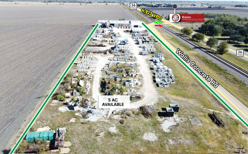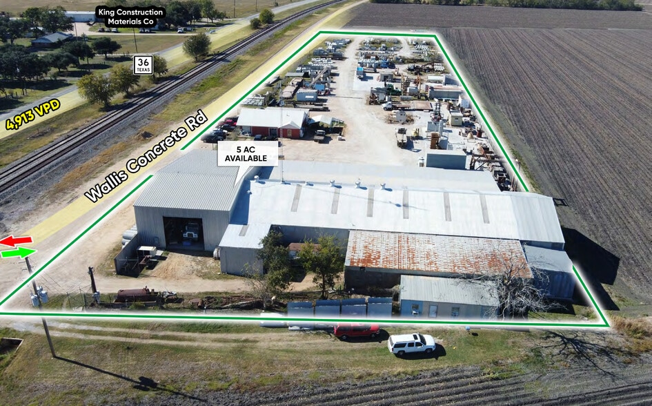 5-acre industrial property with existing concrete plant facilities, level terrain, and ample yard space suitable for heavy equipment access and storage.