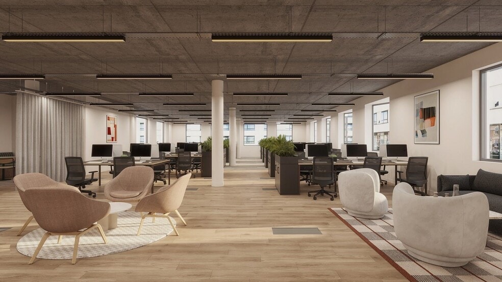 The available floors provide flexible solutions, from a fully fitted, plug-and-play option to spaces that can be tailored to a tenant’s requirements. Abundant natural light, efficient layouts and the rare benefit of private outdoor terraces create a workspace that supports productivity, collaboration and wellbeing. It’s an ideal home for creative, growing and forward-thinking occupiers looking for more than just an office.