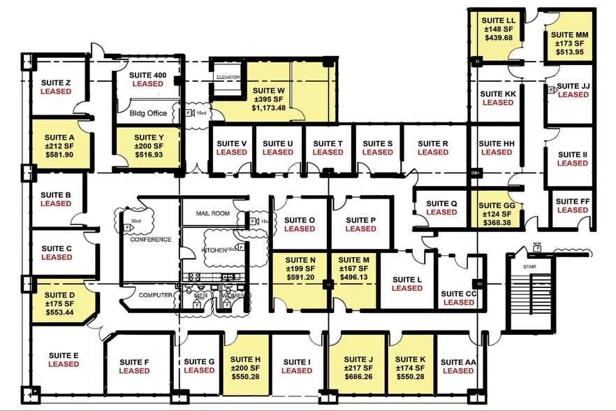 | 4th Floor, Ste Suite MM | - | 173 SF | Upon Request Upon Request Upon Request Upon Request | Office |