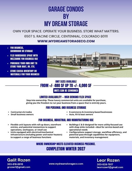 6507 S Racine Cir - Building D 928 - 1,740 SF Flex Condo Units Offered at $361,021 - $761,894 CAD Per Unit in Centennial, CO 80111
