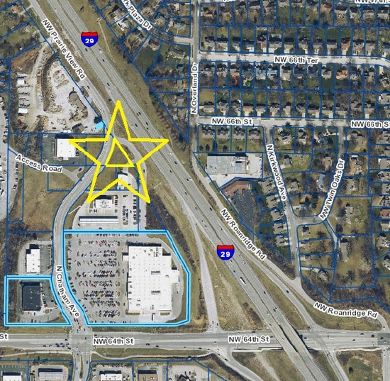 This ¼-acre commercial development parcel offers a rare combination of interstate visibility, established retail co-tenancy, and flexible B-3-2 zoning in one of Kansas City's most active north I-29 corridors. Positioned in the northeast quadrant of 64th Street and I-29, the site sits due north of 6510 NW Prairie View Road and commands direct exposure to I-29 traffic, providing a high-profile platform for retail, service, or mixed commercial development. The surrounding trade area is mature and well-trafficked, with immediate proximity to a strong lineup of daily-needs and convenience retailers.