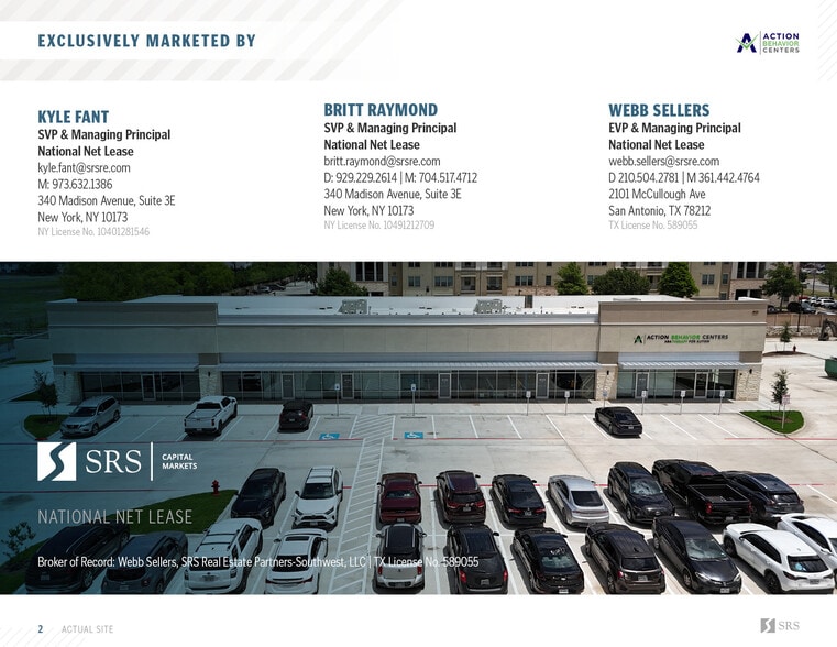 SRS National Net Lease is pleased to present the opportunity to acquire the fee simple interest in a newly constructed, NNN-leased Action Behavior Centers (ABC) property in San Antonio, Texas. ABC is the nation’s leading provider of Applied Behavior Analysis (ABA) therapy services for children with autism and is backed by a strong corporate guaranty. With over 350 locations nationwide and a robust growth trajectory, opening approximately 60 to 80 new clinics annually, ABC continues to expand its national footprint. The tenant recently executed a brand-new 7-year lease featuring 2.5% annual rent increases and minimal landlord responsibilities (limited to the roof, structure, and parking). This offering represents a rare opportunity to acquire a stable, low-maintenance asset with income backed by a fast-growing, mission-driven healthcare operator, ideally suited for passive or out-of-state investors in an income tax-free state.
