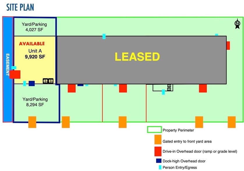 *Unit A: 9,920 SF *2 Drive-In and 1 Dock-High Doors *8,294 SF Individual Gated Parking/Yard *20’- 24’ Clear Height *Sets of Bathrooms in Each Unit *Fully Fire Sprinklered *Easy Access to I-15