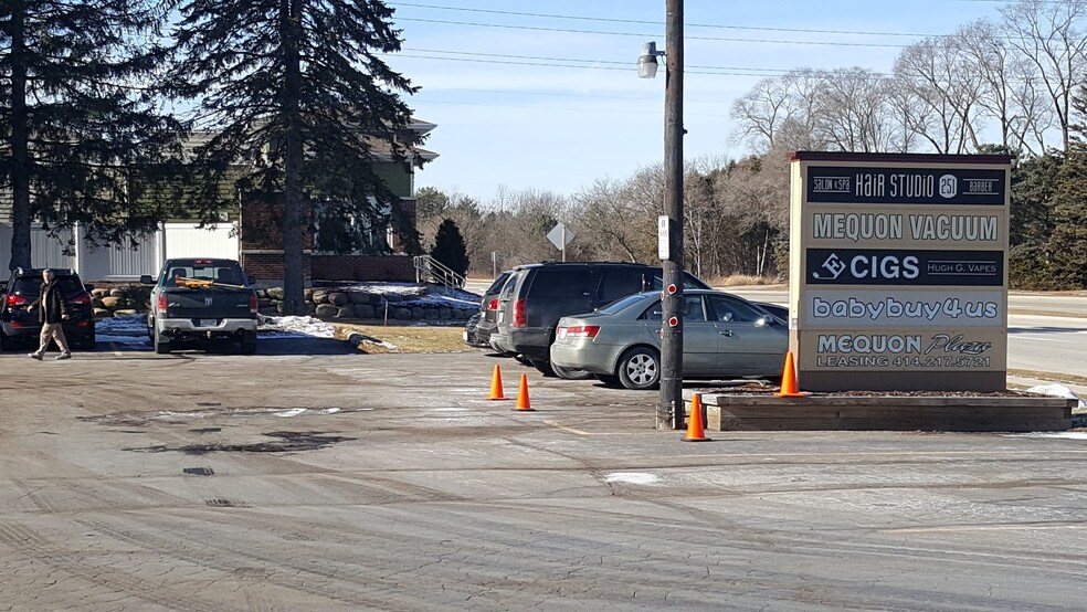 Mequon Plaza is a very active 13,000 sq ft building strip mall located in the upscale City of Mequon's high traffic volume "Arrival Corridor", just outside of the newly completed Mequon City Center development and major Spur 16 mixed retail/condo development as well as three others under construction. Situated on high traffic count(20K) 4 lane Mequon Rd/State Highway 167 with its own cut through and dual drive access. Large floor to ceiling showroom windows showcase this just under 1000 SqFt very bright white box space which directly faces the drive entrance for maximum exposure to your future customers. Space 'A' features a new laminate floating wood floor(with polished concrete underneath) as well as a new highly economical Daiken heat pump heating/cooling system. A unique combination of natural outdoor light along with track lighting and efficient parabolic troffer lighting make this a very flexible space to showcase your dance studio, merchandise/art gallery, or modern office space.