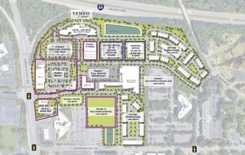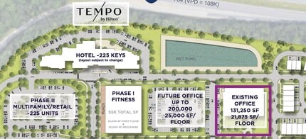 - Integrated amenities including retail, dining, entertainment, hotel, and multifamily residential.