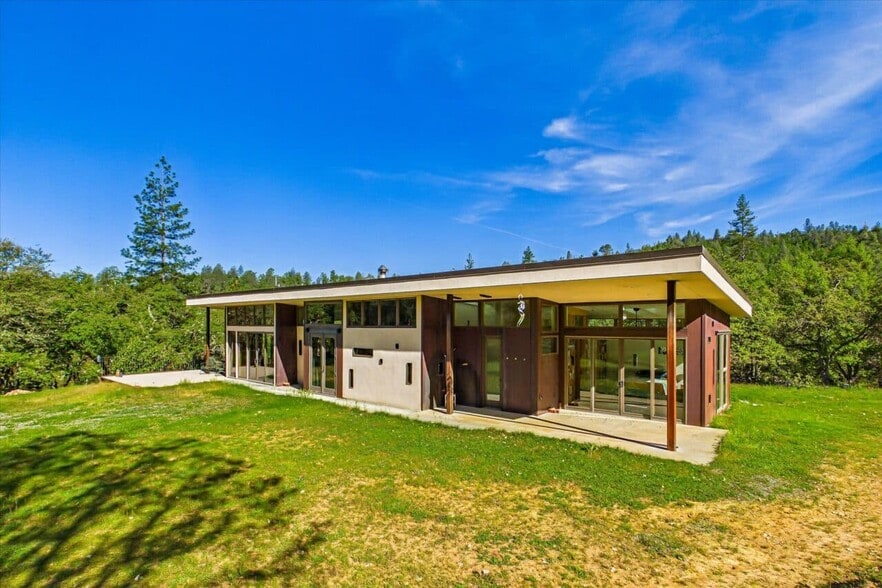 Perched atop 160 private acres in the rugged beauty of Douglas City in Trinity County, this one-of-a-kind off-grid estate is the ultimate prepper’s paradise—where self-sufficiency meets refined comfort. Completely set apart from the world, the property offers unmatched privacy, sweeping natural vistas, and the infrastructure to sustain a fully independent lifestyle. At the heart of the property sits a thoughtfully designed 2-bedroom, 3-bath home featuring a seamless open-air concept that invites the outdoors in. Multiple skylights flood the space with natural light, enhancing the sense of openness and connection to the surrounding landscape. Radiant-heated concrete floors provide year-round comfort, while high-end finishes—including Toto toilets, an outdoor shower, and a fully equipped kitchen with quartz and butcher block countertops, a BlueStar stove and oven, a center island, and a built-in dining bench—deliver a level of luxury rarely found in off-grid living. Constructed with fire-resistant wood paneling and concrete for enhanced safety and durability, the home is built to withstand the elements while offering peace of mind. A striking two-sided fireplace efficiently heats the entire home, complemented by a fire sprinkler system for added protection. The lower-level game room offers flexible space for recreation, fitness, or relaxation. Security cameras are installed throughout the property, providing an additional layer of security. Energy independence is fully realized with a robust 13.5 kW solar power system, supported by a hydroelectric generator. Water resources are abundant, with two creeks and two 5,000-gallon storage tanks, plus an additional 10,000 gallons dedicated to fire protection—creating a truly defensible property. The insulated, temperature-controlled three-car garage is also constructed with fire-resistant wood paneling and concrete and includes an EV charging station. Additional structures include a 2-bedroom, 1-bath mobile home—ideal for caretakers, extended family, or rental income—as well as multiple storage buildings and sheds for tools and equipment. This extraordinary property offers a rare opportunity to live sustainably without sacrificing comfort, all while surrounded by the breathtaking scenery of Trinity County. Property Highlights: • 160 acres of pristine private property • 2 bedroom/3 bath • 13.5 kW 6-panel solar system • 2 bedroom/1 bath mobile home • concrete and metal structure fire-resistant house and garage • 2-sided fireplace • skylights and sliders throughout • recess lighting • game /exercise room downstairs • fully equipped kitchen with Blue Star oven and range/quartz, and butcher block counters. • Premier Propane Water Heater • outdoor shades • security cameras • 230 ft well • full diversion rights, creek to pond, and riparian rights • 2- 5000-gallon water tanks for the house • heat radiant concrete floors • 3-car insulated temperature-controlled garage with EV charging station