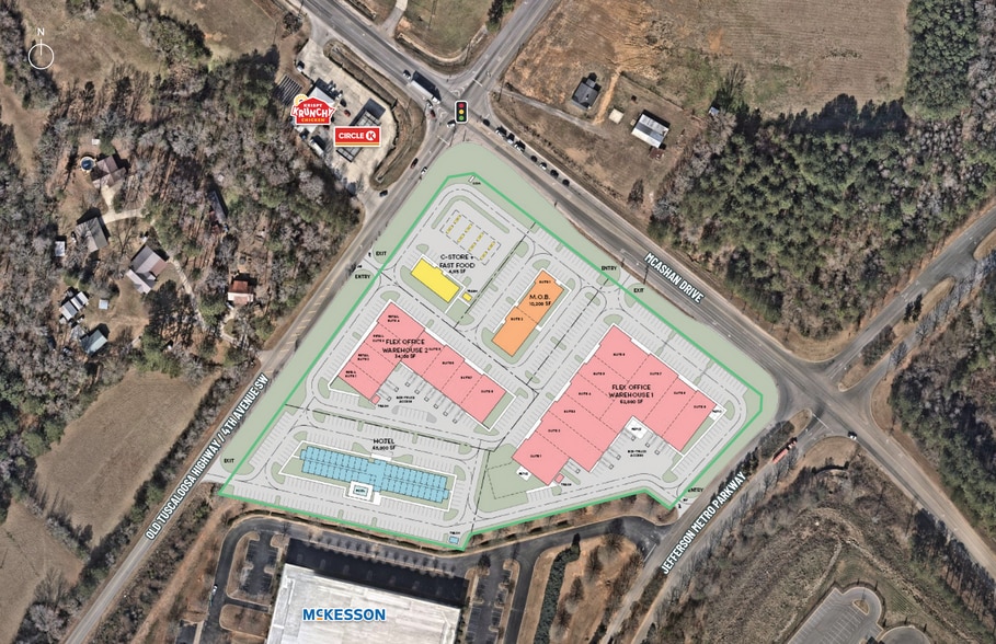 Jeff Met Industrial Park is primed for success and offers a multitude of solutions for office, flex, & retail space. Located off I-20/I-59 at Exit 104 in McCalla, AL, this ground-up development provides not only ease of access and connectivity, but also to a deep and growing labor pool. Maximizing your reach and allowing you to unlock your potential.