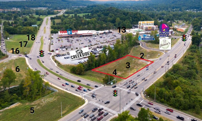 Pad-ready sites in Grassy Creek development, anchored by Food City grocery store opened April 2021. Food City (KVAT Food Stores) is the 33rd largest grocer in the US with 127 stores and 16,000+ employees across Tennessee, Georgia, Virginia and Kentucky, and sales exceeding $2B.