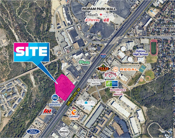 • Exposure to over 179,200 cars per day along Loop 410 • Multiple points of ingress/egress along Loop 410 and cross-access available with adjacent retail center and hotel • Major area retailers include: Ingram Park Mall (anchored by Dillard’s, Macy’s, H&M, JCPenney), At Home, Boot Barn, Ollie’s Bargain Outlet, Boot Barn, Best Buy, Barnes & Noble, DSW, Five Below and several others