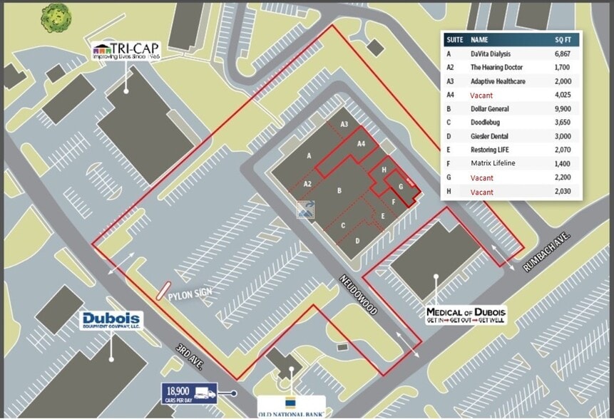 Jasper has the Lowest Unemployment in State of Indiana - 3 large spaces available for lease in a recently redeveloped retail center anchored by Dollar General - Space A4: 4,025 SF ; Space G: 2,200 SF ; Space H: 2,030 SF - $8.00 /SF /YR /NNN - Ample parking for clientele - Shared loading dock access - Neighboring tenants include Playful Healing & Counseling, Matrix Lifeline, Restoring Life, Giesler Dental, Doodlebug, Adaptive Healthcare, The Hearing Doctor, DaVita Dialysis, TriCap, Fazoli's and many more