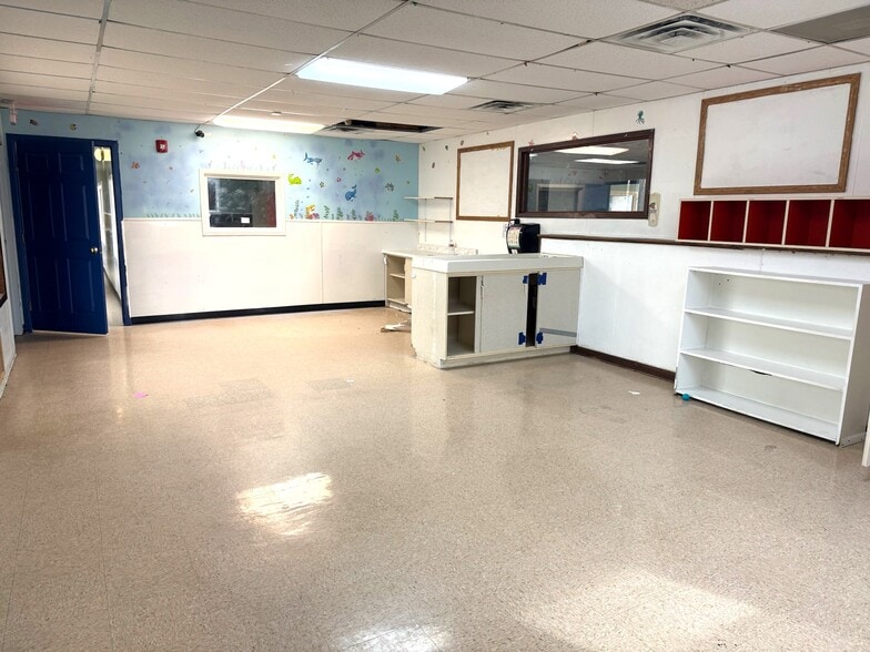 6 Classrooms, 9 Restrooms, Office, Kitchen & outdoor playground area.