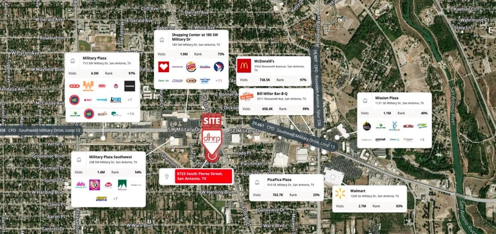 Military Drive features the two closest Super Walmart locations in the entire United States, along with three Super H-E-B stores, demonstrating the extraordinary retail density and commercial viability of this thriving corridor. The property benefits from ±245 parking spaces, exceptional visibility, high daily traffic counts, and on-site VIA bus service, ensuring excellent accessibility for tenants and customers alike.