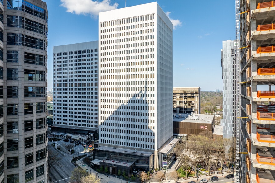- Office amenities include access to indoor patios, bike storage with shower facilities, kitchen/pantry space, and perimeter windows for BeltLine views.