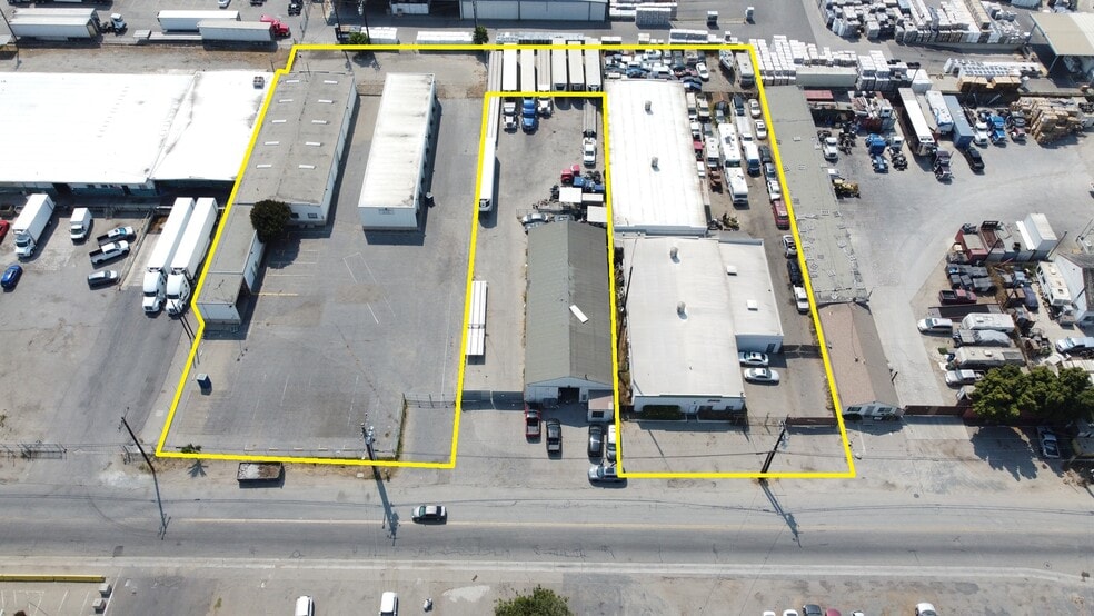 677 Pacific Avenue is occupied by a long-term tenant of approximately 23 years, providing stable income and demonstrating the property’s long-term functionality. This portion includes three interconnected warehouse buildings with a small office component and fenced yard areas for vehicle storage and operations.