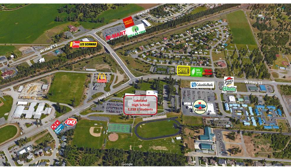 Space Available: 0.98 Acres ± Located on Major Arterials - Hwy 41 & Hwy 53 Average Daily Traffic Hwy 41 - 14,000 ADT ± Hwy 53 - 15,000 ADT ± Adjacent Tenants: Idaho Central Credit Union, Super One Foods, Auto Zone, & Bi-Mart
