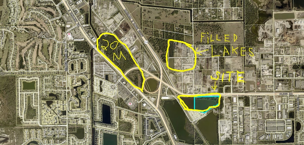 29 acres consisting of 5 acres of land and 21 acres of lake. This is not a sale rather it is a JOINT VENTURE opportunity in a strategically located property close to I 75 and US 41 in a high growth area of Lee County Florida. Proposal: Looking for a joint venture partner to fill in part of the lake creating more frontage along Alico Road. Due to massive redevelopment in Lee County, builders will pay to dump their clean fill into the lake. The Bass Pro Shop in nearby Gulf Coast Towne Center was previously a lake before it was filled in during development. Ryan Companies just paid 20M for 60 acres nearby for a 350 unit apartment complex, a 150 unit motel etc. This 29 acre property has 1,200 of frontage on Alico Road which is a high demand area in South Ft Myers. The location between Ft Myers and Naples has always been very desirable for investment and development. Alico Road is perfectly situated to benefit between Ft Myers and Naples and it is one of the few Interchanges in Lee County on I 75.