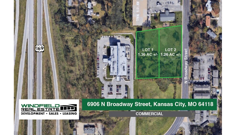 The plots of land along N Broadway Street in Gladstone, MO, offer excellent visibility and are well-suited for development to serve the surrounding neighborhood population. The first plot is approximately 1.26 AC (+/-), and the second is approximately 1.36 AC (+/-). These plots of land allow investors to develop properties that can meet the local community's needs in a prominent location.