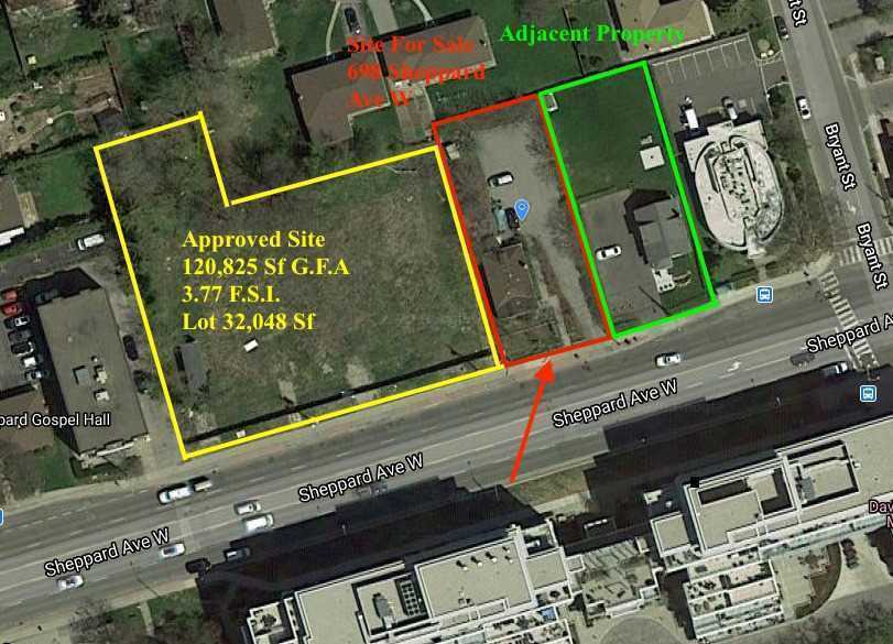 Incredible Opportunity To Purchase A Mid-Rise Development Site In Uptown Neighbourhood. Recent Planning Decisions Indicate That The Site, Combined With Adjacent Property To The East, Can Accommodate A 9 Storey Building With A Total Gross Floor Area Of 80,000-82,000 Sf (3.8 Fsi). Potential Total Site Area 0.496 Acres With 141' Frontage. Extras:The City Of Toronto Official Plan Designates The Subject Site Avenue And Mixed Use. The Site Is Also Subject To The Sheppard West/Dublin Secondary Plan, Wherein It Is Designated "Mixed Use Area B". Lot Size Incl #696 Sheppard Ave.