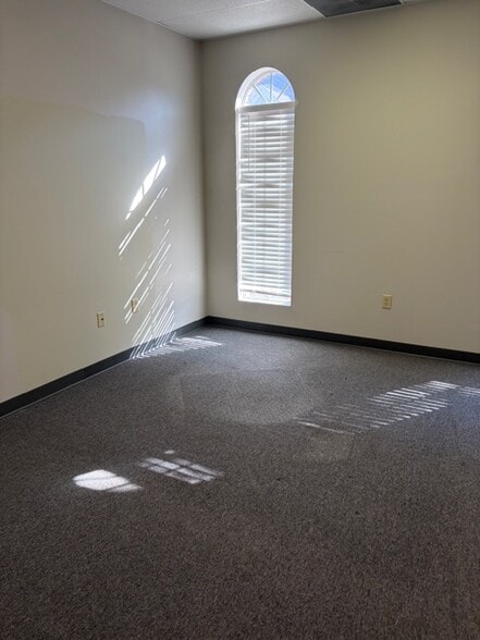 6 professional office spaces; reception area, work room, wood grain solid doors and trim, carpet, 2 bathrooms, storage room, two HVAC units,