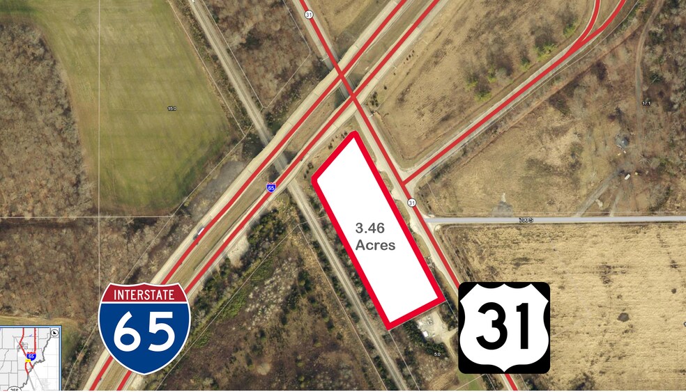 Now available for sale is 3.46 acres at the prime corner of Interstate 65 & US 31. Several uses are possible here with General Business zoning. The property provides excellent visibility with daily traffic counts between 4,966 and 5,863. Location is centrally located . It is 76 miles to Indianapolis, 38 miles to Louisville, 98 miles to Cincinnati.