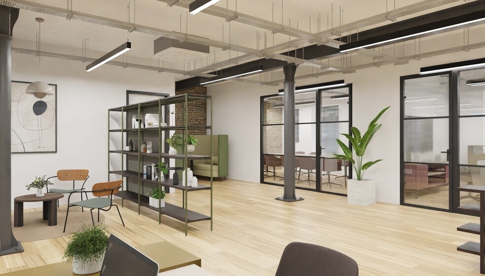 The first floor (3,035 sq ft) has been fully refurbished, featuring new engineered timber flooring, air conditioning and LED lighting. It includes demised WCs, a shower as well as a new kitchenette. It has recently been fully fitted and furnished, offering ready-to-occupy workspace showing 32 desks, a large boardroom and 7-person meeting room as well as various break out areas.