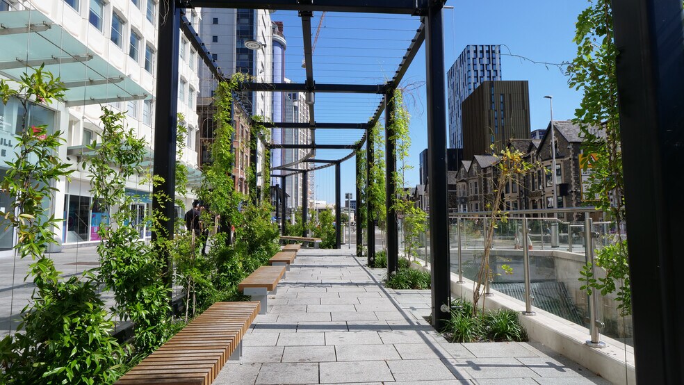 - Seamless communications afforded by an on-site car park, 50 cycle spaces, end-of-journey facilities, and the adjacent Cardiff Queen Street station.