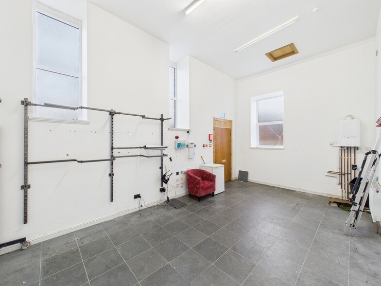 The subjects comprise a detached retail unit/former church formed in sandstone . The roof is of pitched design and clad in slate with rainwater goods of modern uPVC. There is a small car park to the rear laid in tarmacadam with garden grounds surrounding the property laid in chips. The landlord has instructed a full replacement of the roof at their expense which is scheduled to be undertaken in January 2026. The front pedestrian entrance door and windows are all of modern uPVC double glazed. Access to the front pedestrian door is ramped providing wheelchair access. Services are of mains electricity, gas, water and drainage. Heating is supplied by a modern Ideal gas boiler servicing water filled radiators throughout the property. Lighting is of LED spotlights within the main retailing space. There is a fire alarm and security alarm present.