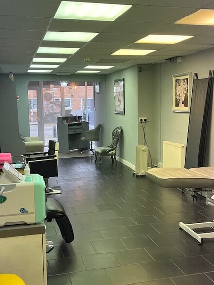The premises are on the ground floor and have a glass frontage and door and is situated on a busy Main Street with a large footfall close to other shops and amenities in a busy centre. The main room is currently used as a laser treatment facility and the smaller rooms are used as treatment rooms and baby scanner service. Previously used as a ladies hairdresser’s and beautician’s.