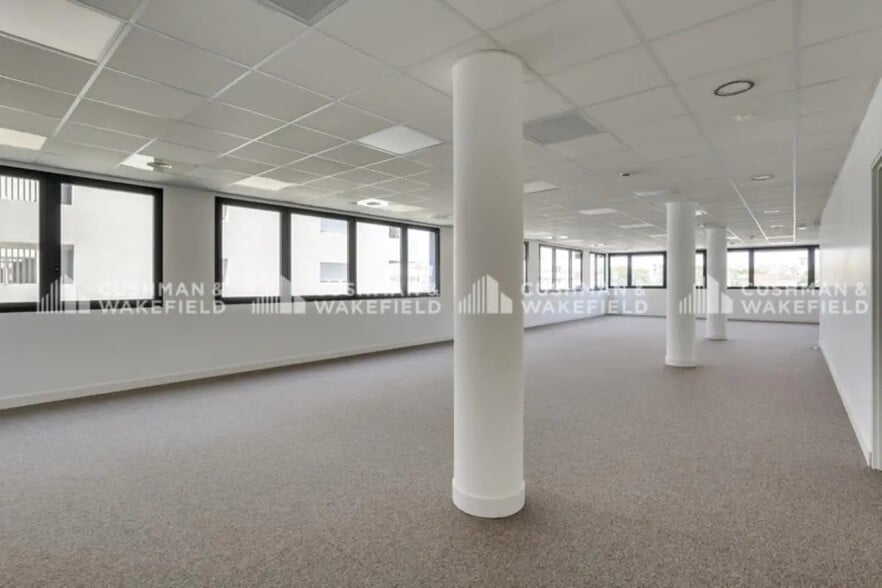 Cet espace situé au deuxième étage du bâtiment C offre un aménagement en open space, idéal pour des équipes souhaitant travailler dans un environnement collaboratif. Les prestations incluent un faux plancher technique, des dalles de moquette et des plafonds suspendus, garantissant confort et fonctionnalité. L’immeuble propose également des services modernes et une excellente luminosité naturelle.