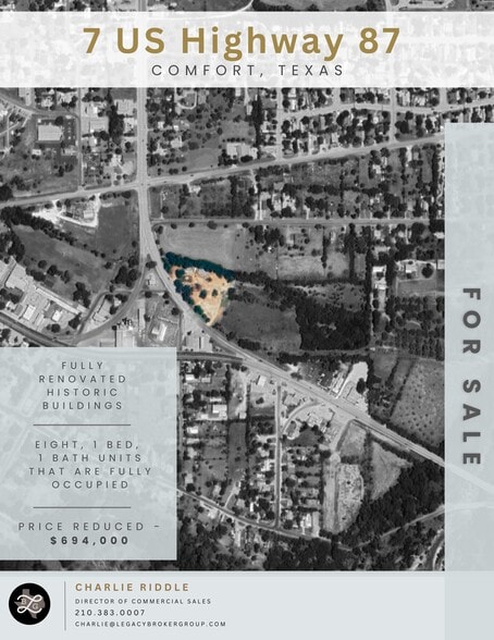 ***NEW REDUCED PRICE*** 7 US Highway 87 in Comfort, TX, presents an excellent income-generating investment opportunity. This property features historic buildings that have been renovated into eight 1-bedroom, 1-bathroom units, all of which are fully occupied.