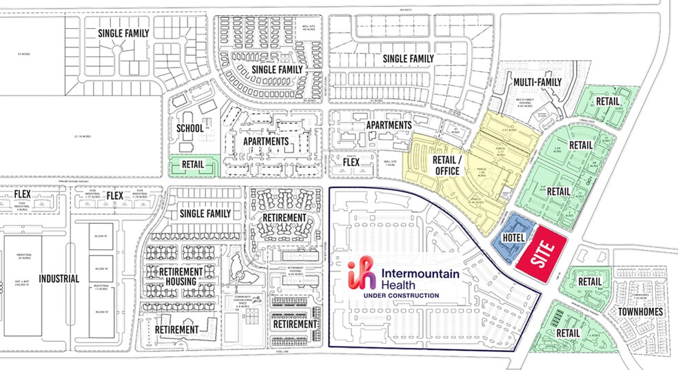 This multi-use development in Ephraim, UT, is part of a 240-acre master-planned community, featuring a new Intermountain Health hospital under construction next door. Building 1 - 1,200 SF - 6,000 SF, (2) drive-thru's Building 2 - 1,200 SF - 6,000 SF, (2) drive-thru's Building 3 - 2,400 SF Drive-thru restaurant