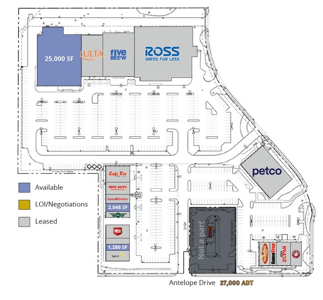 | Total Space Available | 25,000 SF | Frontage | 1,298’ on Antelope Dr |