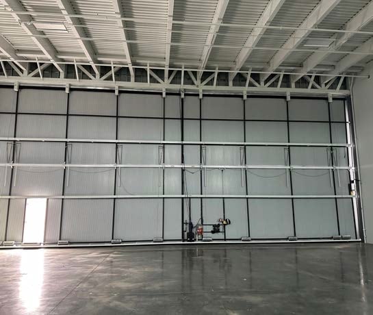 - Bifold motorized door measuring 23 feet high by 64 feet wide.