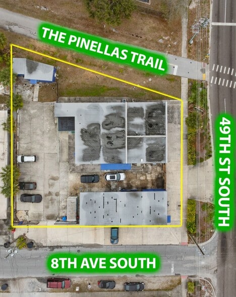 This is a unique, two-building flex property located directly on the Pinellas Trail with frontage on 49th Street South, the main north–south corridor into Gulfport with approximately 22,000 vehicles per day. This property is a rare opportunity to purchase a property with both high traffic road frontage and direct frontage on The Pinellas Trail.