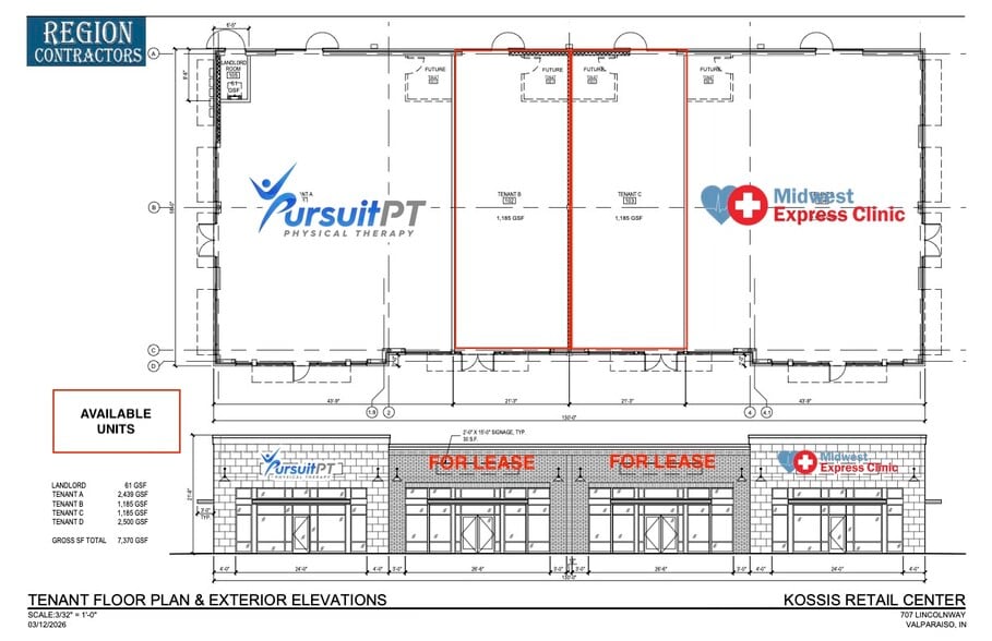 Building currently under construction with space expected to become available Q3 2026. Currently designated as 4 units with 2 units remaining. Unit size is negotiable from single units of approximately 1200sqft each up to a total of approximately 2400sqft, if a tenant is interested in combining the remaining 2 center units.