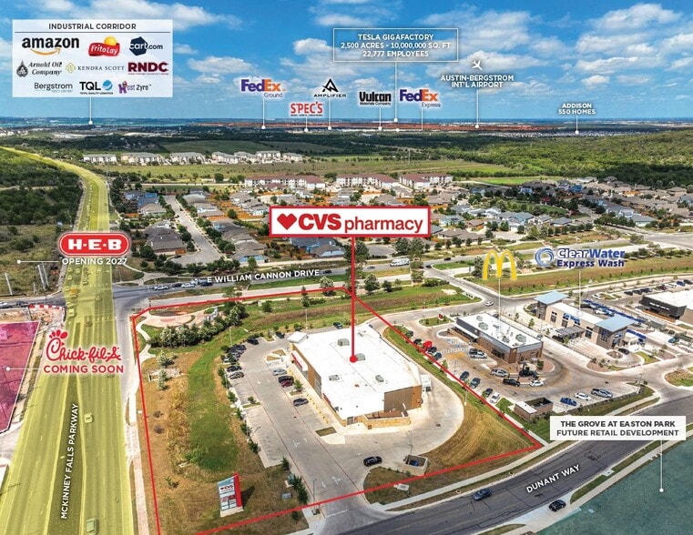 - Large 3.15-acre lot on the hard corner of the signalized intersection of E William Cannon Drive and McKinney Falls Parkway