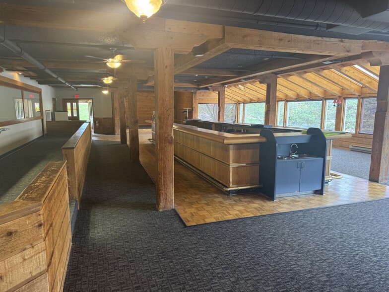 Originally constructed as an event center and most recently used as a culinary school, the space is well-equipped for a variety of uses including a church, restaurant, entertainment venue, or open-concept office. It features a large remodeled commercial kitchen with a 32-foot hood system, two full-service bars, multiple stages, and room for a cooler. The interior boasts beautiful exposed timber construction, abundant natural light, and a soaring open layout that fosters a welcoming and creative atmosphere.
