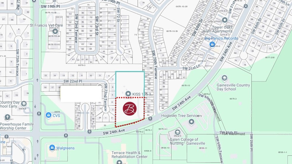 The front ±2 acres to be split off of 7120 SW 24th Avenue offer a highly visible development opportunity along one of Gainesville’s fastest-growing westside corridors. The property is zoned Agricultural with Institutional Future Land Use, allowing fo