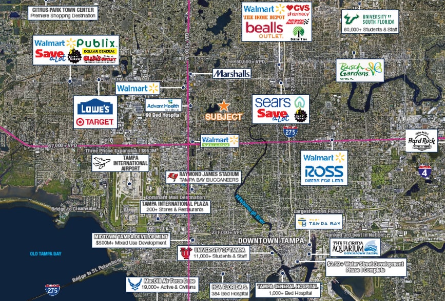 Strategically located on N Armenia Avenue, the property benefits from strong traffic counts of approximately 20,500 vehicles per day and excellent visibility within a dense residential and commercial trade area. The surrounding 3-mile radius boasts a population exceeding 126,500 residents with an average household income of $77,630, supporting long-term retail demand.