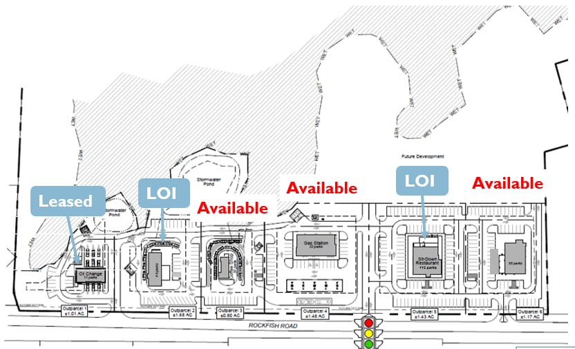 This commercial property consists of ~12 +/- developable acres across six outparcels. Willing to ground lease or build-to-suit. Centrally located near Jack Britt High School and the Harris Teeter, Publix, Food Lion and (coming soon!) Target Shopping Centers.