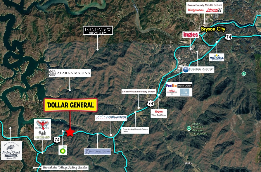 Fortis Net Lease is pleased to present this 2021 BTS Dollar General store located in Bryson City, North Carolina. The property is secured with a 15 year Absolute NNN Lease leaving zero landlord responsibilities. There are 10 years left on the primary term. The lease contains 5 (5 year) options to renew, each with a 10% rental rate increase. The lease is corporately guaranteed by Dollar General Corporation which holds a credit rating of “BBB”, which is classi?ed as Investment Grade. The store has been open & successfully operating since July 2021.