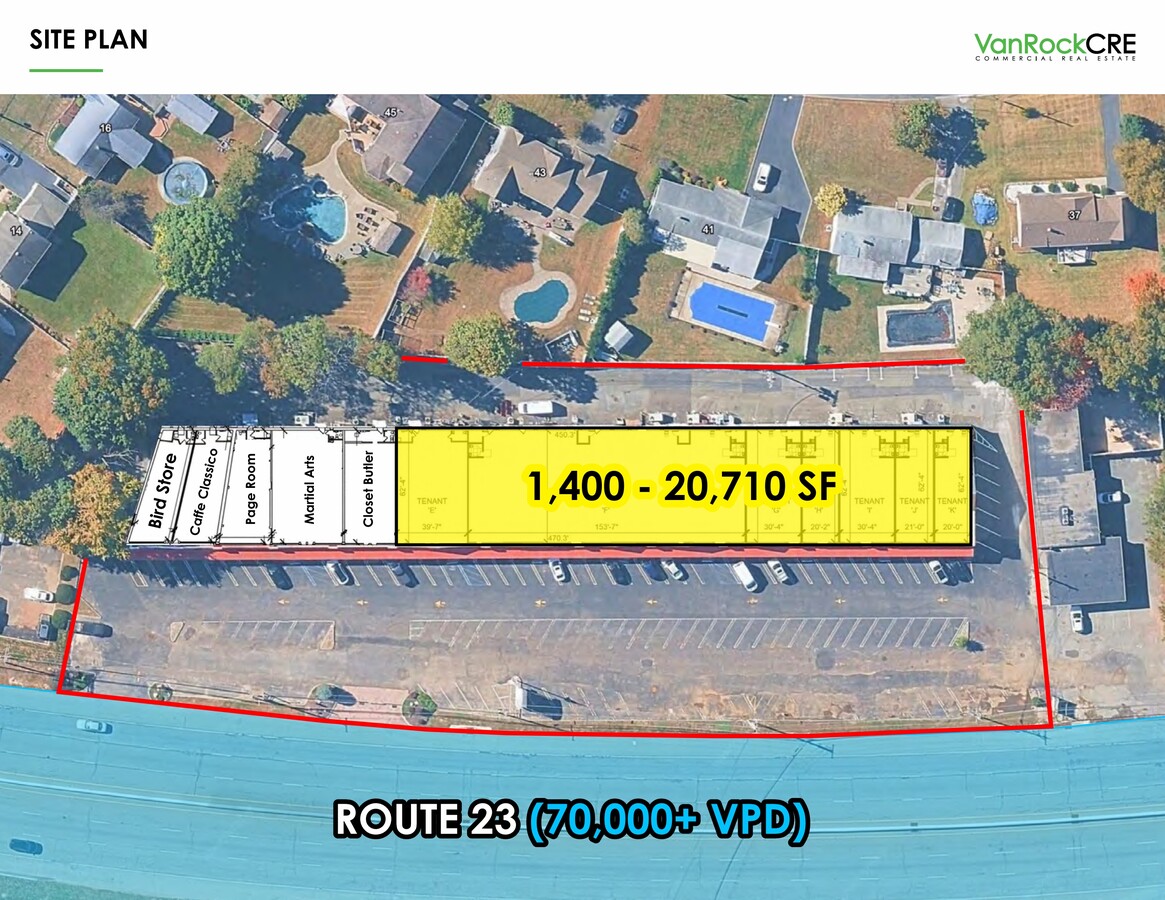 This prime Route 23 strip center offers immediate availability with newly renovated storefronts delivered in vanilla box condition, positioned along a highly trafficked retail highway corridor. The property benefits from over 500 feet of highway frontage with planned new pylon signage, ample parking, and an additional new parking lot coming soon. Located within a densely populated and affluent trade area, the center is well suited for a wide range of uses including restaurants, medical users, retail showrooms, fitness concepts, and recreation or med spa operators.