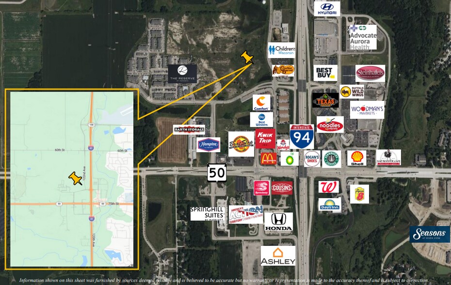 Municipal utilities are available at the site, streamlining development timelines. The area is surrounded by a robust mix of national retailers, hospitality brands, and healthcare providers, including Best Buy, Woodman’s Markets, Aurora Health, and Advocate Children’s Hospital. Traffic counts are impressive, with 98,600 vehicles per day on I-94, 26,700 on STH 50, and 5,500 on 122nd Avenue.