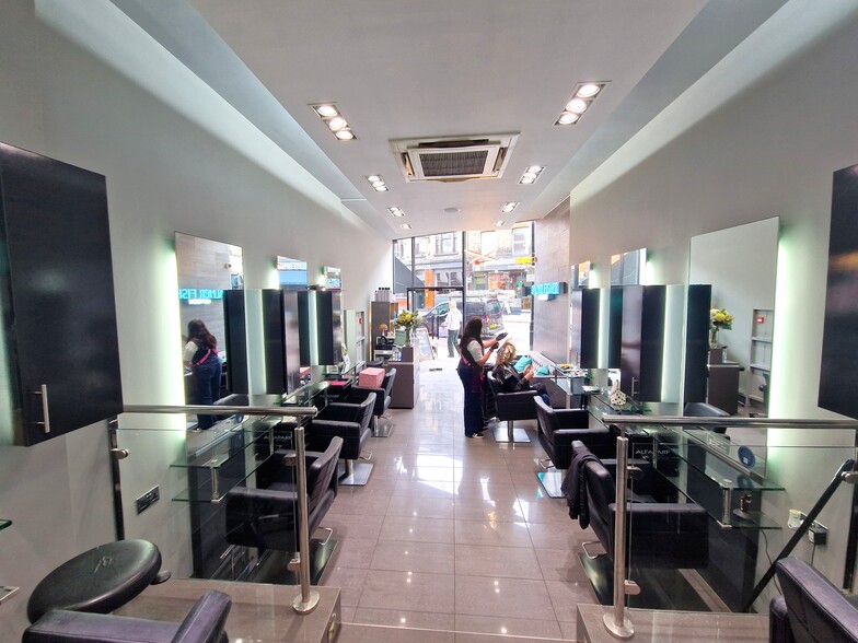 This prominent Class E Use retail unit offers a good sized open plan space and has been an established hair salon for many years. The premises are in excellent decorative condition with marble tiled flooring, air-conditioning, a fully glazed shop front, directional spotlighting, 8 cutting stations, 3 backwash stations and a single WC/washroom at ground floor with staff kitchen, ancillary storage and office space at basement level. There is an enclosed garden providing a staff rest area. Ground floor area 450ft² (41.8m²) Single WC/washroom Basement 458ft² (42.5m²) Enclosed rear yard 165ft² (15.3m²) LEASE: A new full repairing and insuring lease for a term to be agreed. RENT: £35,000 per annum exclusive. LEGAL COSTS: The ingoing Tenant to be responsible for both parties legal costs.