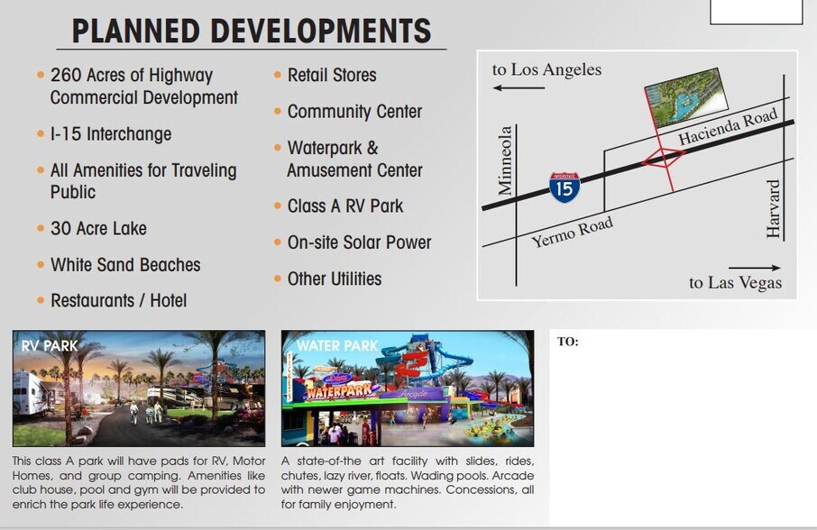 - Sale includes all plans, design, engineering, and the County of San Bernardino approval.