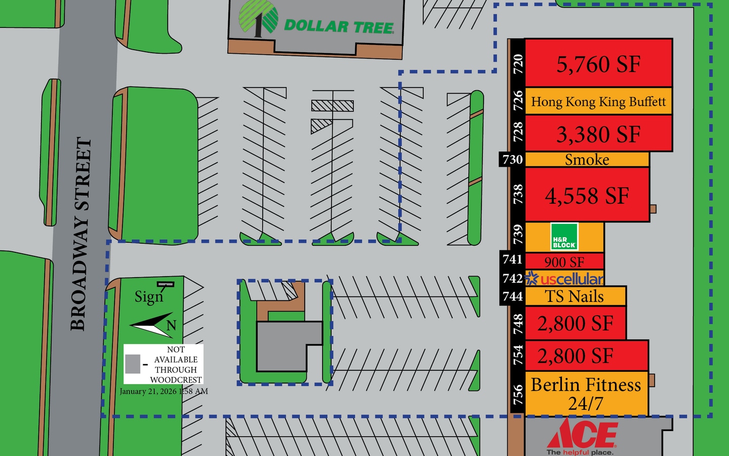 Greentree Mall is a shopping center for lease in Berlin, WI, located conveniently along Broadway Street in Green Lake County in an Opportunity Zone. This property spans more than 32,000 square feet across three acres and features several long-standing tenants, including Hong Kong King Buffet, H&R Block, Berlin Fitness and TS Nails. This shopping center is shadow-anchored by Ace Hardware, Dollar Tree, and Tractor Supply—major stores that draw consistent consumers to the area. Businesses seeking retail space for lease in Berlin, Wisconsin will find Greentree Mall to be a conveniently located and easily accessible commercial destination with over 1000 feet of frontage along Broadway St. Greentree Mall is located across from a long-standing Walmart Supercenter and near multiple new developments that continue to support this community and further its growth. Berlin also benefits from local tourism tied to annual events, outdoor recreation, and manufacturing and agriculture industries. Businesses seeking commercial property for rent in the Berlin WI market will find this property to be strategically positioned for both local and regional consumer bases. Commercial suites at this center are generally available to lease for anything from traditional retail storefronts and restaurants to offices to medical or other professional service providers. Woodcrest Capital welcomes first time and franchise businesses to its centers with easy-to-read leases and flexible terms. Woodcrest is also sufficiently sophisticated to please the largest of national credit tenants. As a family-owned business with over 40 years in commercial real estate, Woodcrest owns and operates everything from Class A centers in the busiest neighborhoods to troubled centers it’s rehabilitating in struggling rural communities. Give us a call today to find the right location for your business as we usually have multiple retail opportunities in the immediate area!