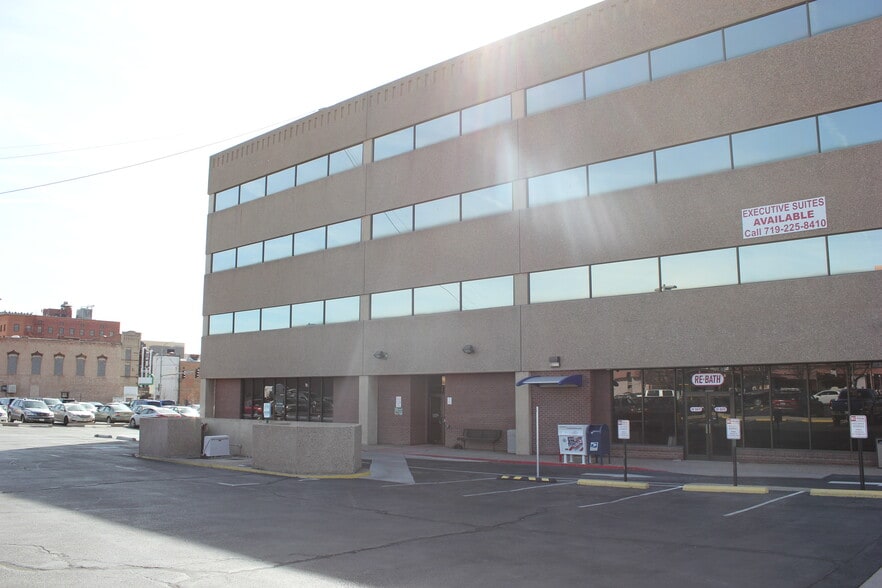 Large, recently renovated office building constructed in 1974 at the intersection of N Main Street and W 8th Street. The building was renovated with many capital expenditures. It has a large parking lot and ample street parking. It is conveniently located near I-25 for travel to Colorado Springs and Denver.