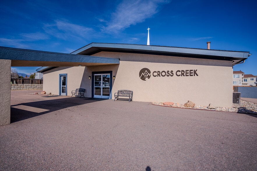 Cross Creek Church located on C & S Road in Fountain, offering a combination of functional improvements and future redevelopment potential. The property is Zoned PUD (Planned Unit Development), providing flexibility for a variety of potential uses subject to municipal approval. The existing building was designed for religious assembly and includes a large sanctuary, multiple ancillary rooms suitable for classrooms, offices, meetings, or community use, and ample on site parking to support gatherings and events. The layout allows for continued use as a place of worship or adaptive reuse with minimal configuration. The PUD zoning may allow for alternative or mixed use redevelopment opportunities, including but not limited to community facility, educational, nonprofit, event space, or other compatible uses (buyer to verify permitted uses and development standards with the City of Fountain. The property is situated in a high traffic area with convenient access to Fountain, Fort Carson, and the greater Colorado Springs metro area. This offering presents an opportunity for an owner user or investor seeking a flexible use property in a growing southern El Paso County market.