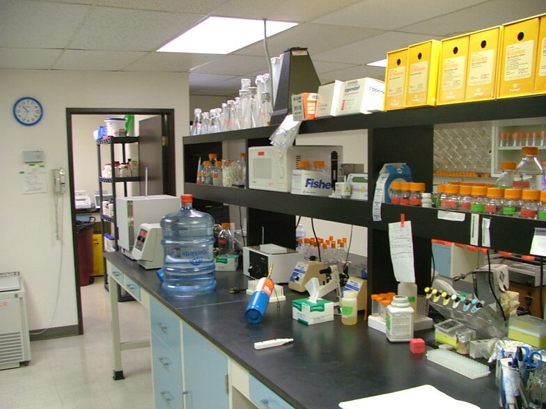 • Approximately 475 sq. ft currently available; three 12'x2.5' and one 10'x2.5' benches, double sink, two desks, cabinets, shelves; includes utilities, high speed internet. Lab is equipped for biochemistry, molecular genetics, functional genomics, microbiology. Lease can include use of common equipment, refrigerator; also general chemicals, glassware, disposables, molecular reagants and kits. • Optional: 130 sq. ft. common equipment room, 135 sq. ft. reception room 150 sq. ft. private office • Future: Approximately 1100 sq. ft. laboratory with new fixtures may become available in the near future. Includes four lab bays each with 22'x2.5' bench space, 2 additional 8.5'x2.5' lab benches, 1 double sink, conference area or additional lab space. • California Clinical Laboratory license, CMS CLIA certification (currently inactive) A portion of the space has already been subleased still some of the remaining 1,950 square feet of the lab is still available please call for specifics.